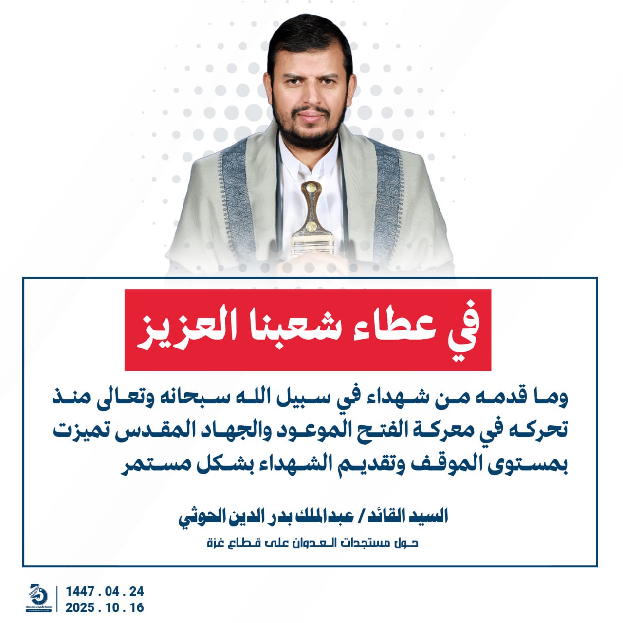 Return to "مقتطفات من كلمة السيد القائد عبدالملك بدرالدين الحوثي “حفظه الله”حول المستجدات في قطاع…"