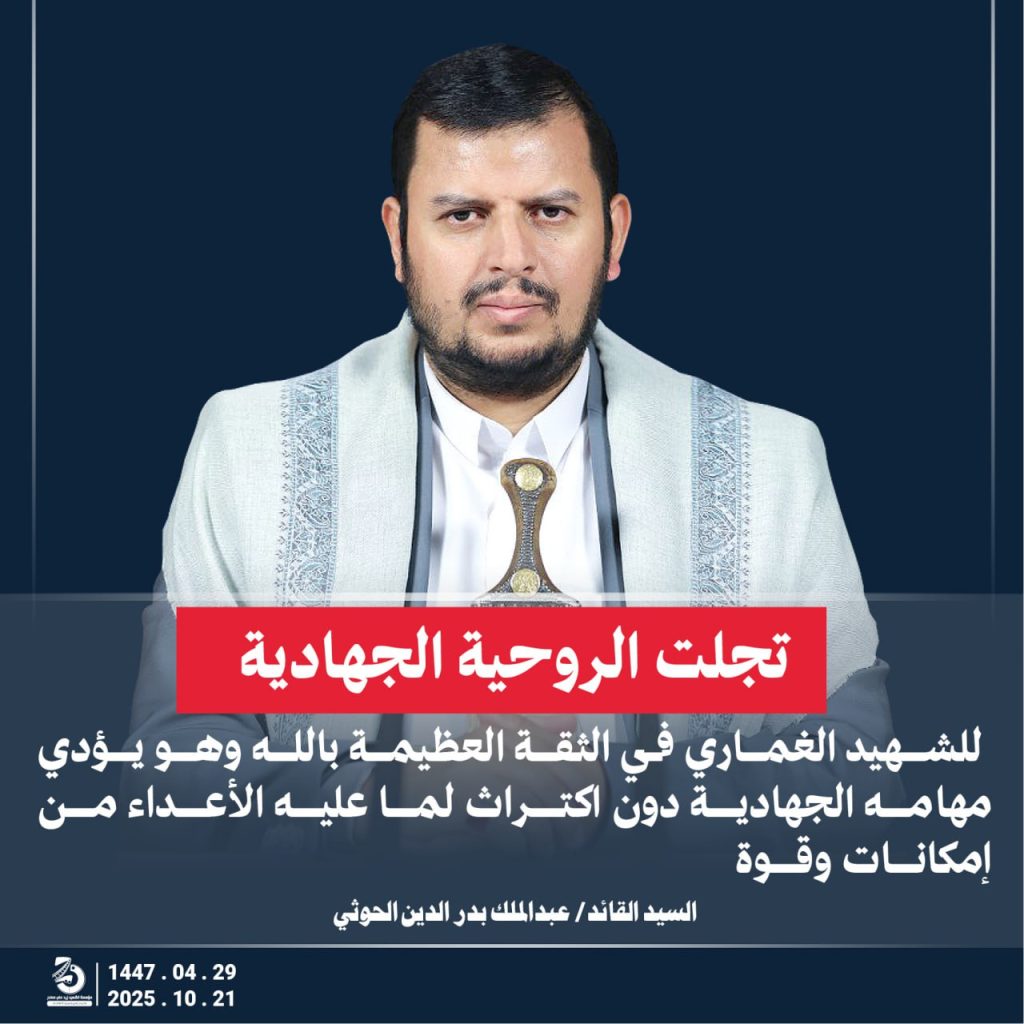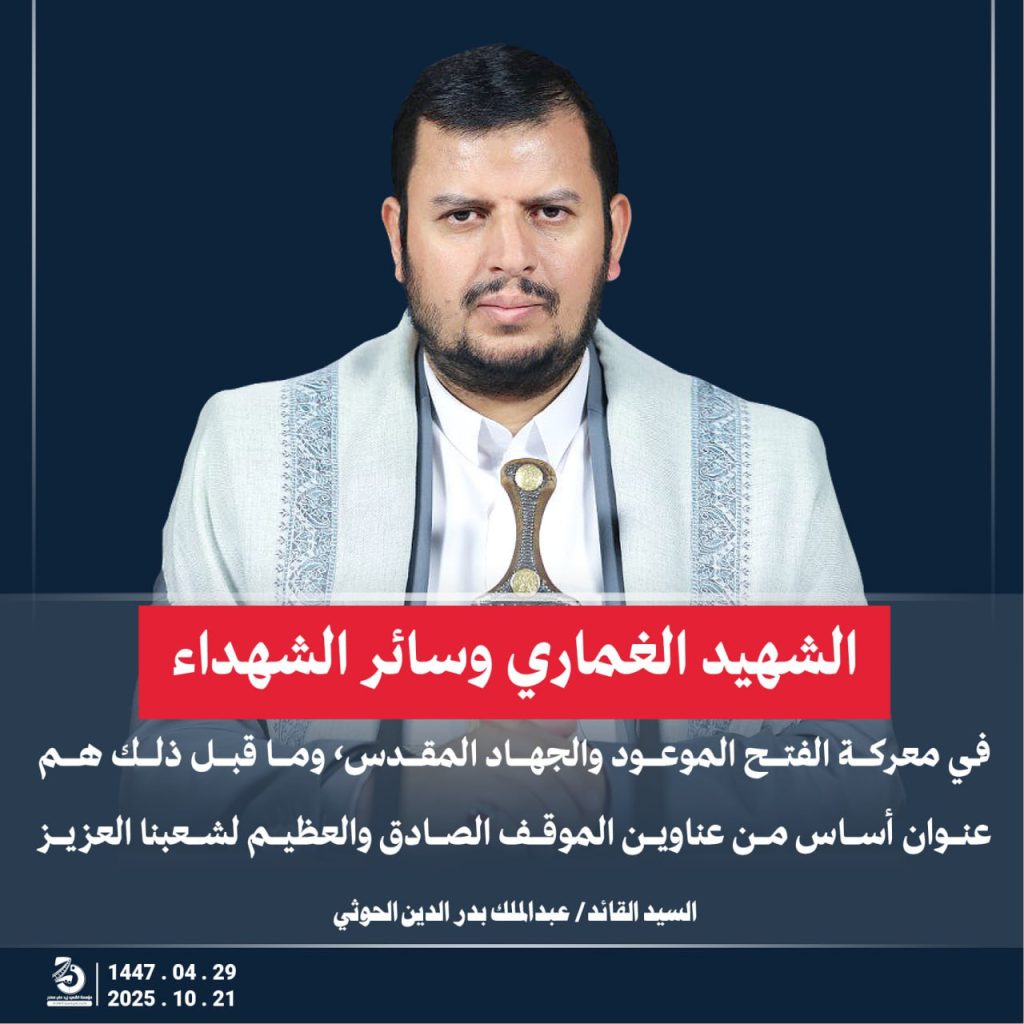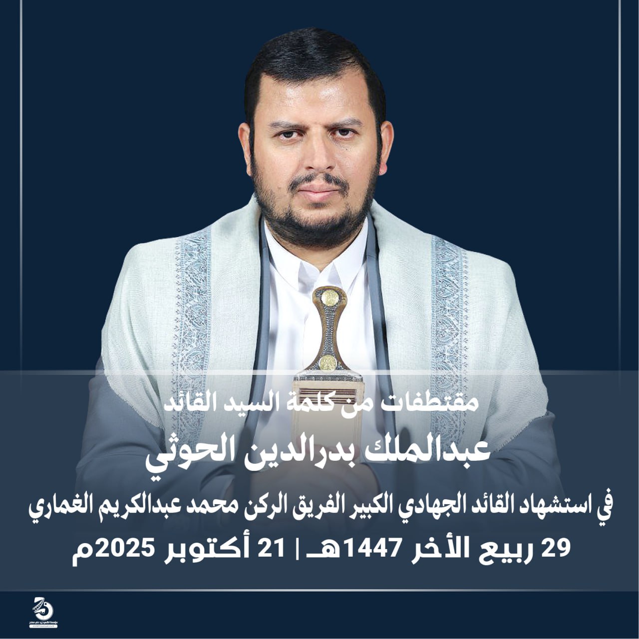 Image مقتطفات من كلمة السيد القائد عبدالملك بدرالدين الحوثي في استشهاد القائد الجهادي الكبير الفريق الركن محمد عبدالكريم الغماري أكتوبر 21, 2025 السيد عبدالملك بدر الدين الحوثيالشهيد الغماريشهداؤنا عظماؤناطوفان الأقصىلستم وحدكم FacebookTwitterTelegramWhatsApp
