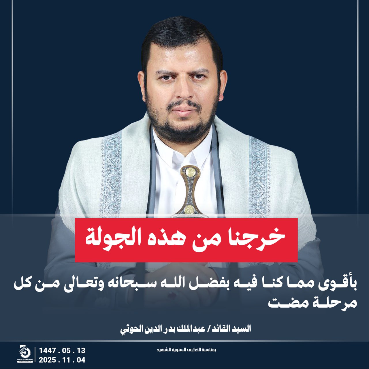 Return to "مقتطفات من كلمة السيد القائد عبدالملك بدرالدين الحوثي بمناسبة الذكرى السنوية للشهيد و آخر التطورات…" 25 التالي السابق