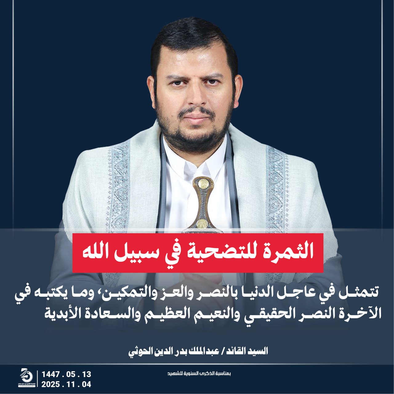 Return to "مقتطفات من كلمة السيد القائد عبدالملك بدرالدين الحوثي بمناسبة الذكرى السنوية للشهيد و آخر التطورات…" 9 التالي السابق