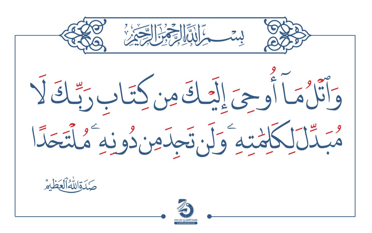 Image (وَاتْلُ مَا أُوحِيَ إِلَيْكَ مِن كِتَابِ رَبِّكَ لَا مُبَدِّلَ لِكَلِمَاتِهِ وَلَن تَجِدَ مِن دُونِهِ مُلْتَحَدًا ) يناير 19, 2026 الزكاهالصلاةرسول اللهقرآن كريممحمد رسول الله FacebookTwitterTelegramWhatsApp