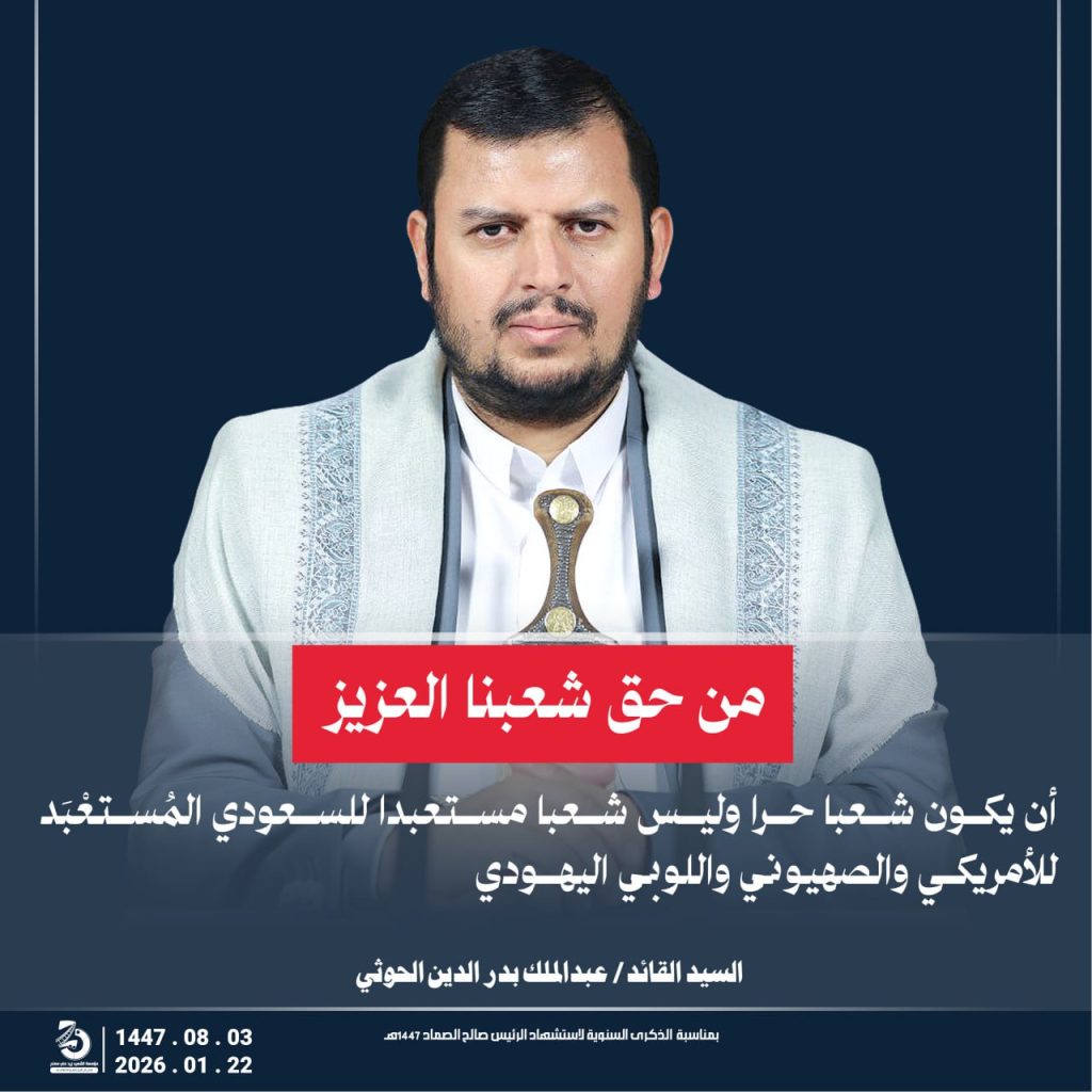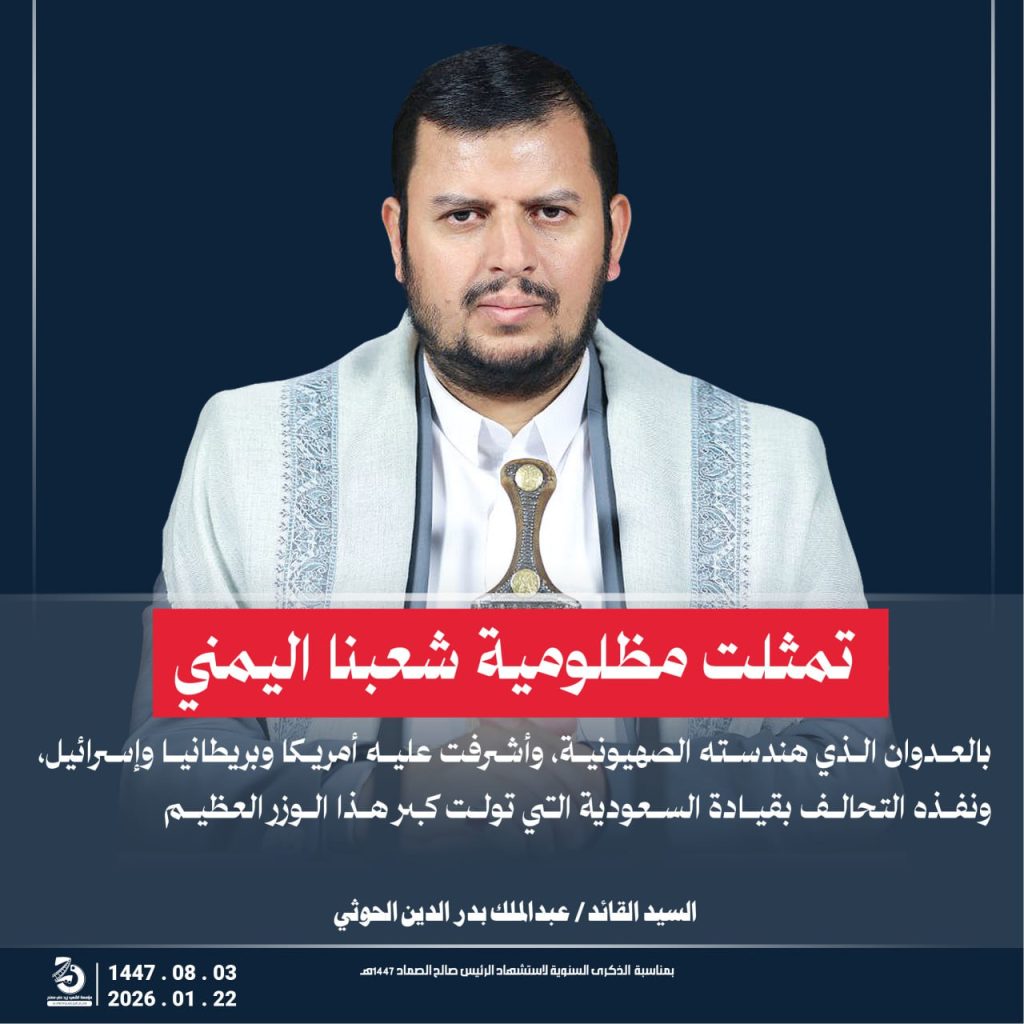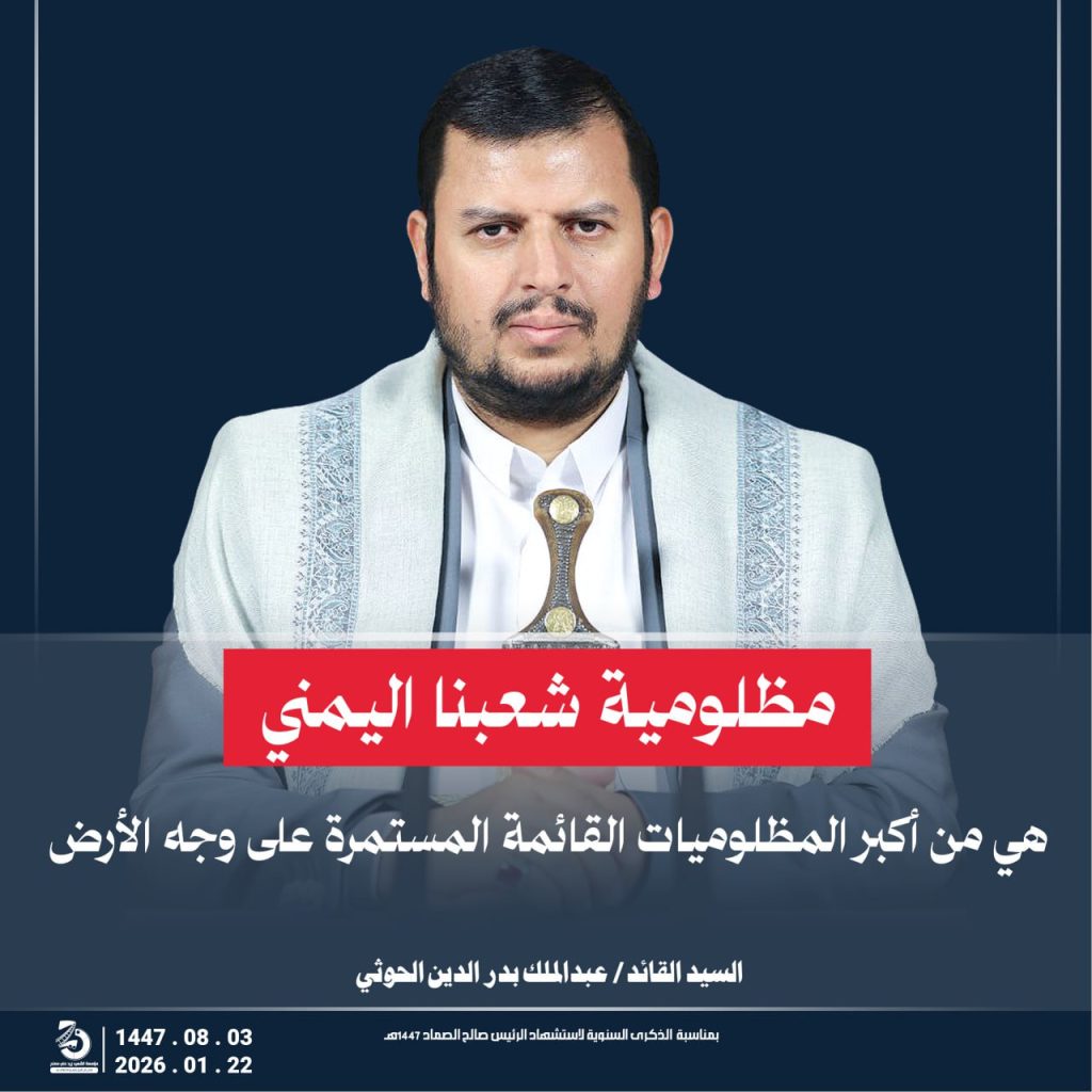 مقتطفات من كلمة السيد القائد عبدالملك بدرالدين الحوثي بمناسبة الذكرى السنوية للشهيد الرئيس صالح الصماد يناير 22, 2026 الرئيس الشهيدالسيد عبدالملك الحوثيالشهيد الصمادالعدوان على اليمنصالح الصمادغزةفلسطين FacebookTwitterTelegramWhatsApp
