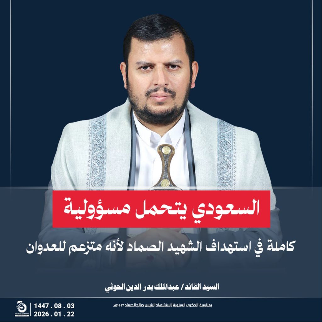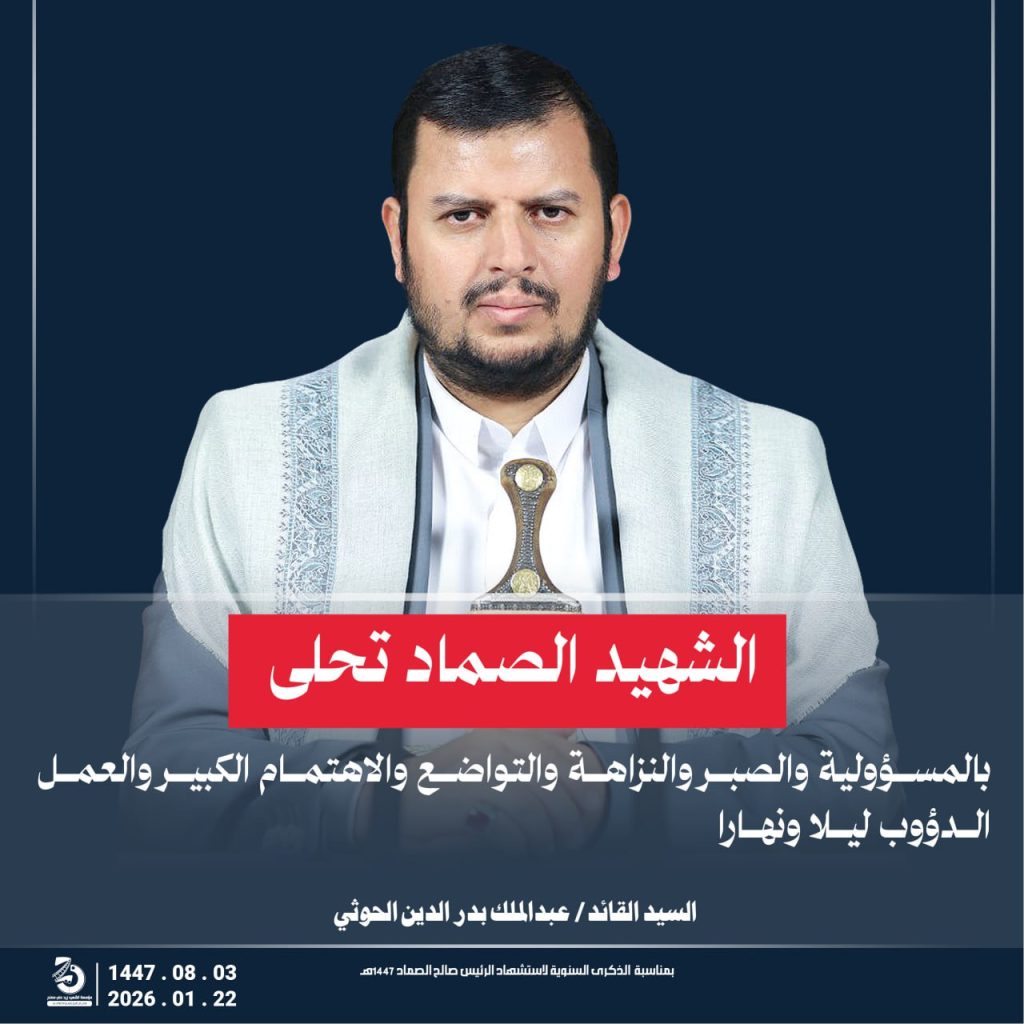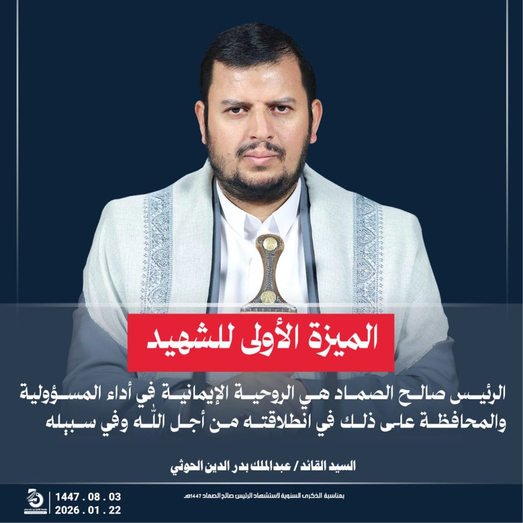 مقتطفات من كلمة السيد القائد عبدالملك بدرالدين الحوثي بمناسبة الذكرى السنوية للشهيد الرئيس صالح الصماد يناير 22, 2026 الرئيس الشهيدالسيد عبدالملك الحوثيالشهيد الصمادالعدوان على اليمنصالح الصمادغزةفلسطين FacebookTwitterTelegramWhatsApp
