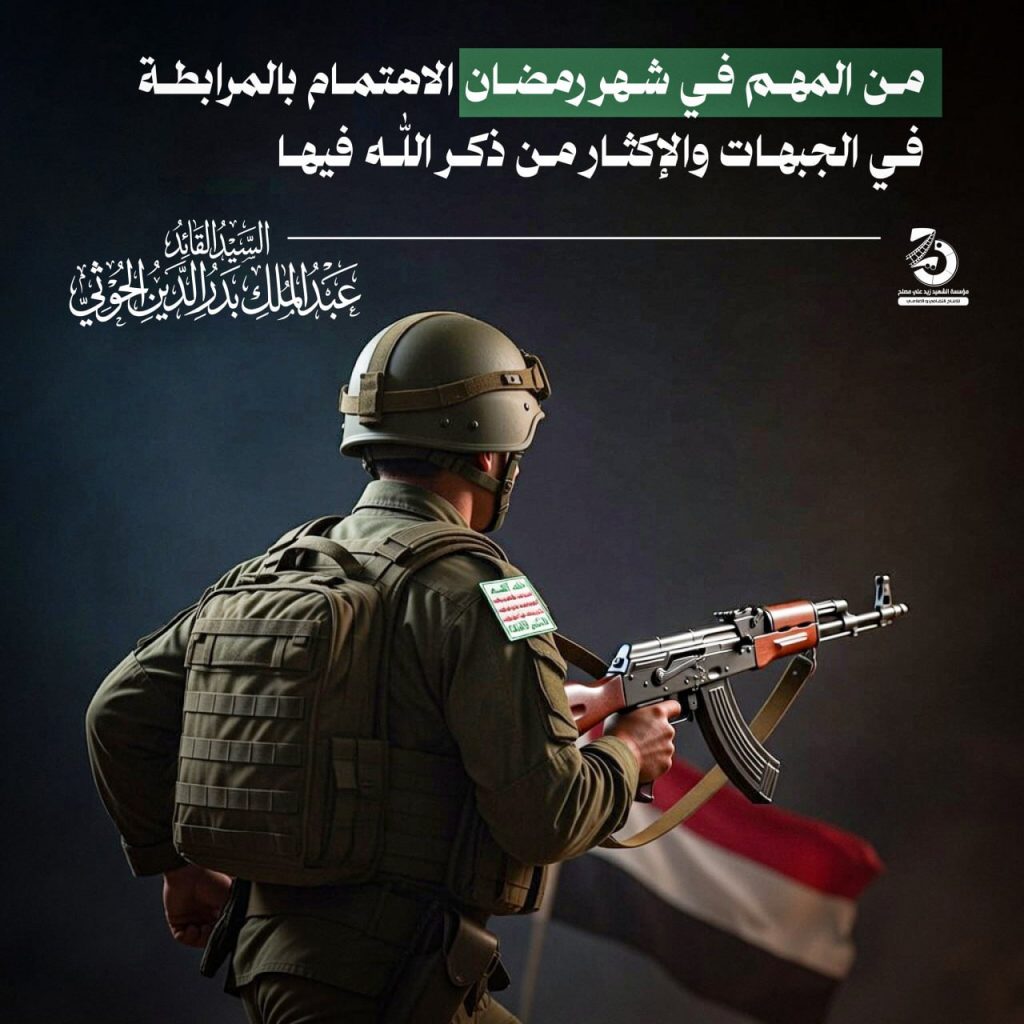 Image المهم في شهر رمضان الاهتمام بالمرابطة في الجبهات والإكثار من ذكر الله فيها فبراير 16, 2026 الزكاهالصياماليمنرمضان كريمشهر القرآنشهر رمضانليلة القدرهدى للناس FacebookTwitterTelegramWhatsApp