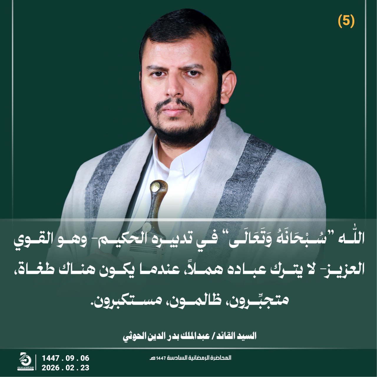 Return to "مقتطفات من المحاضرة الرمضانية السادسة للسيد القائد عبدالملك بدر الدين الحوثي 6 رمضان 1447هـ" تدبيرة الحكيم وهو القوي العزيز التالي السابق