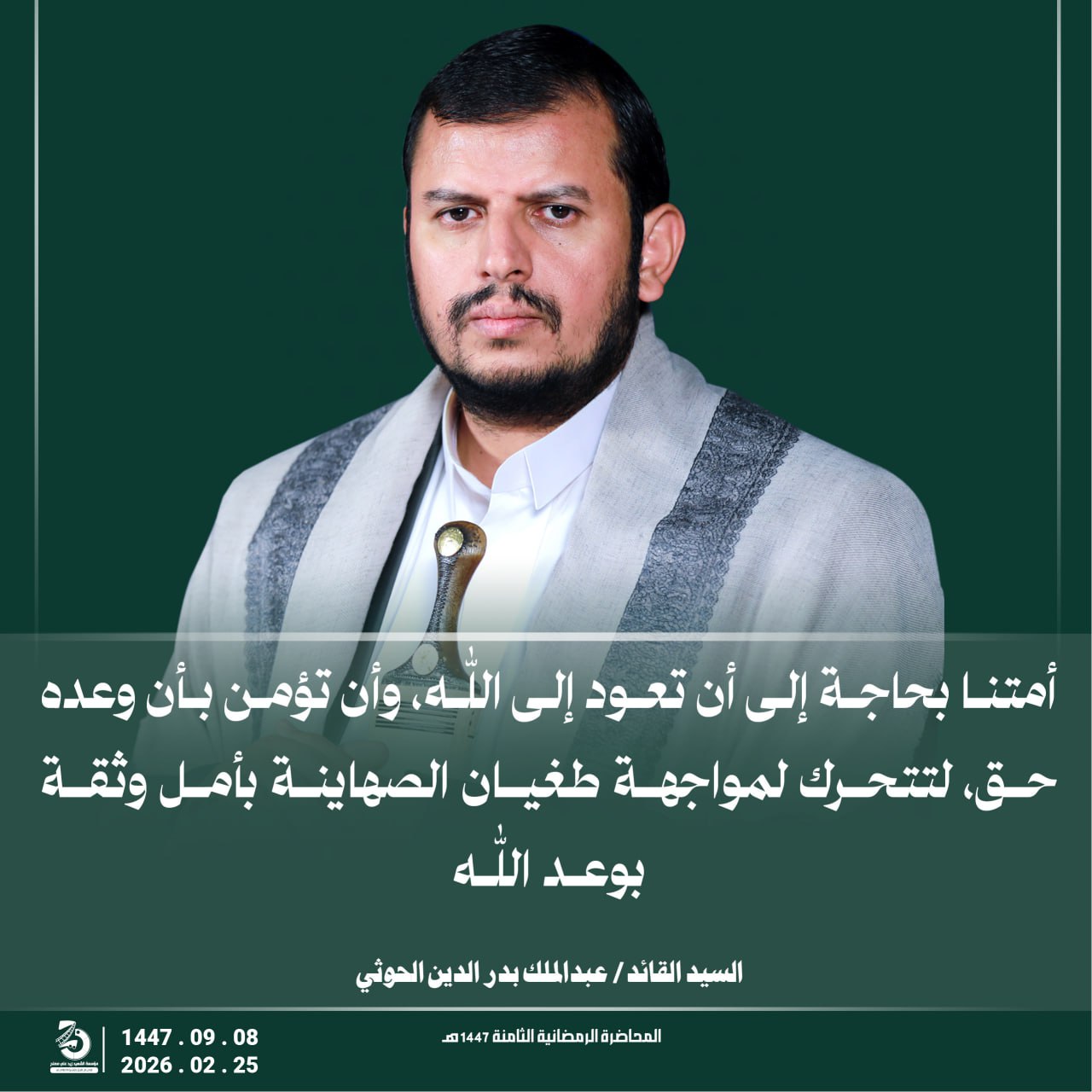 Return to "مقتطفات من المحاضرة الرمضانية الثامنة للسيد القائد عبدالملك بدر الدين الحوثي 08 رمضان 1447هـ" امتنا بحاجة الى ان تعود الى الله التالي السابق