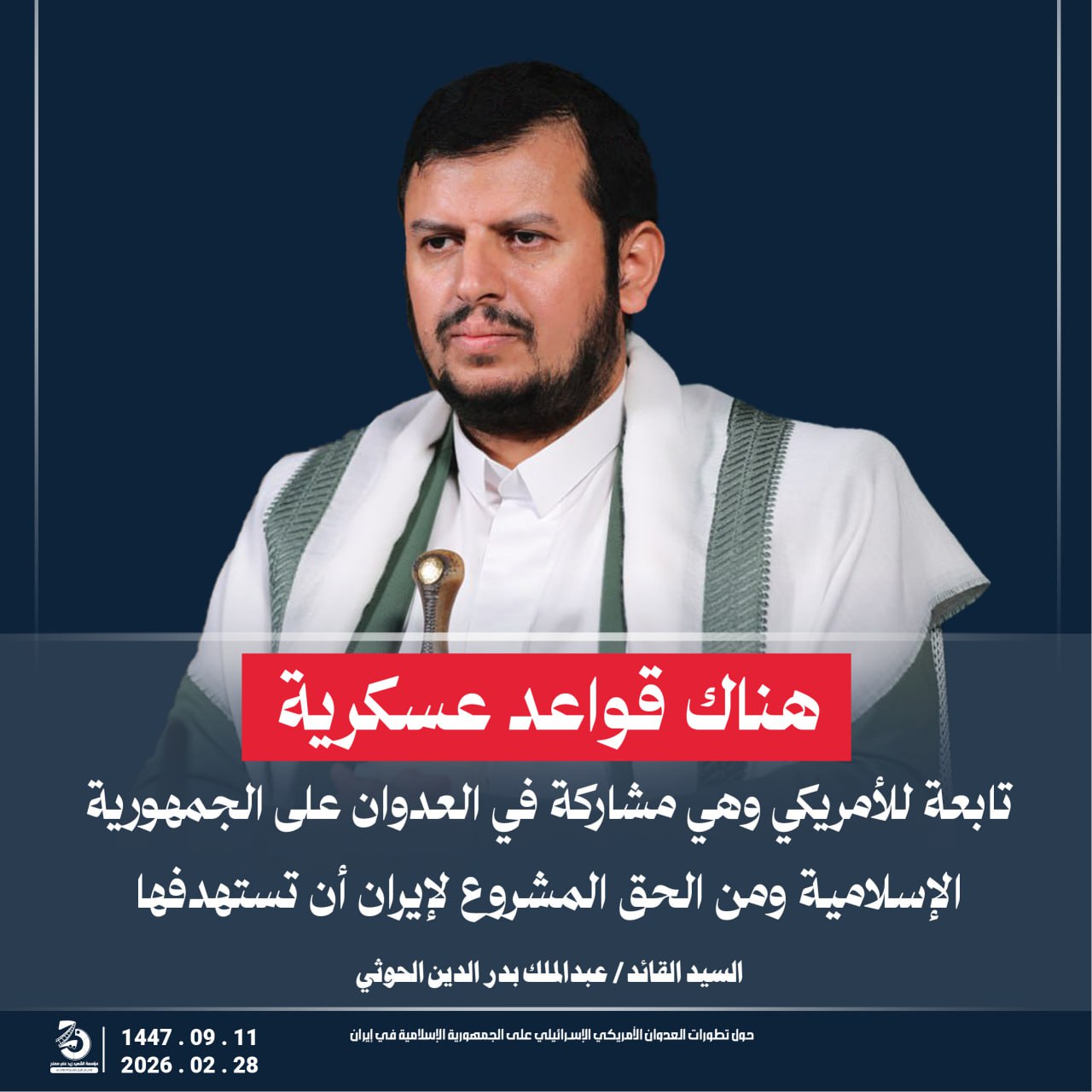 Return to "مقتطفات من كلمة السيد القائد عبدالملك بدرالدين الحوثي حول العدوان الأمريكي الإسرائيلي على الجمهورية…" 12 التالي السابق