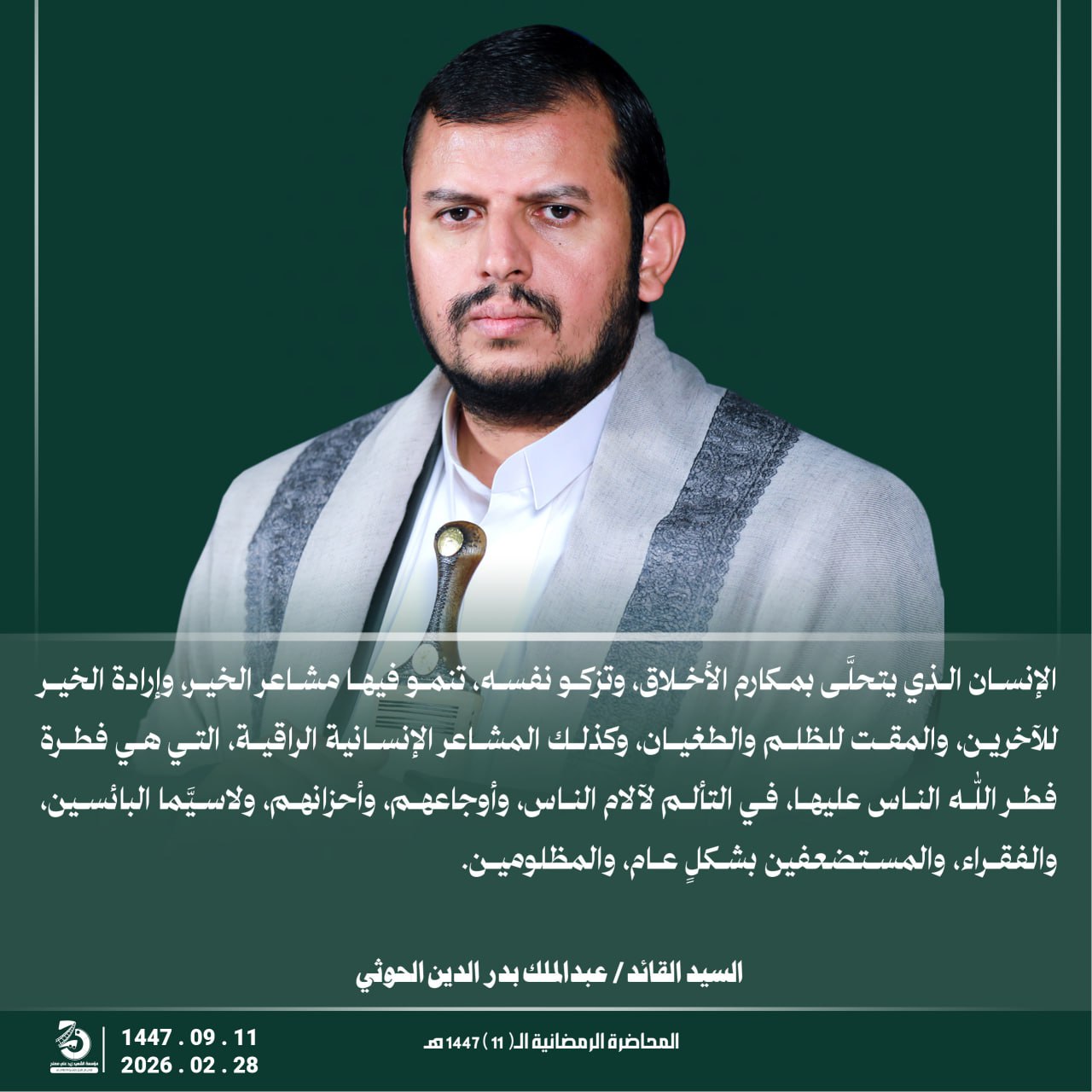 Return to "مقتطفات من المحاضرة الرمضانية الحادية عشرة للسيد القائد عبدالملك بدر الدين الحوثي 11رمضان 1447هـ" الانسان يتحلى بمكارم الاخلاق التالي السابق