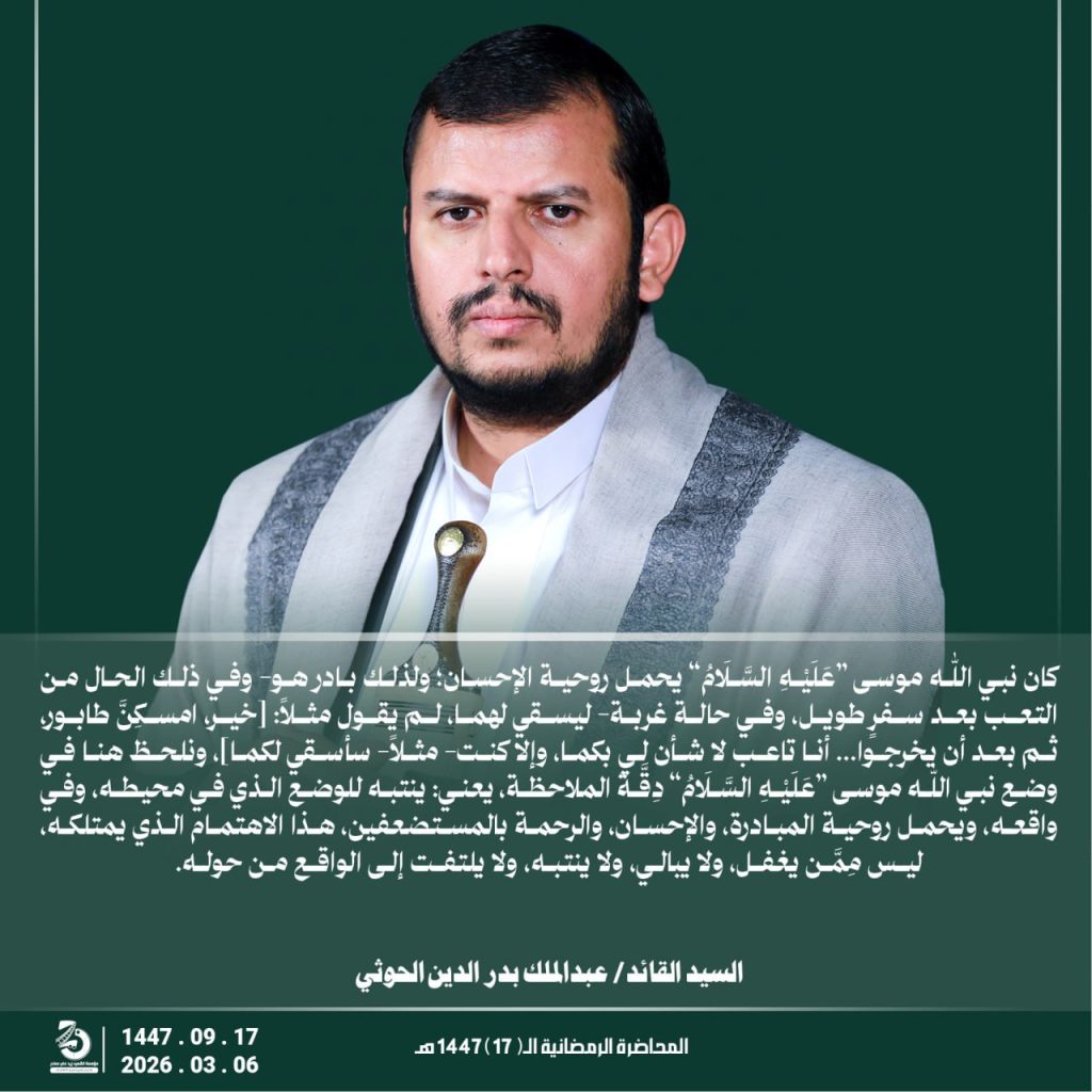 مقتطفات من المحاضرة الرمضانية السابعة عشرة للسيد القائد عبدالملك بدرالدين الحوثي 17 رمضان 1447هـ 06 مارس 2026م