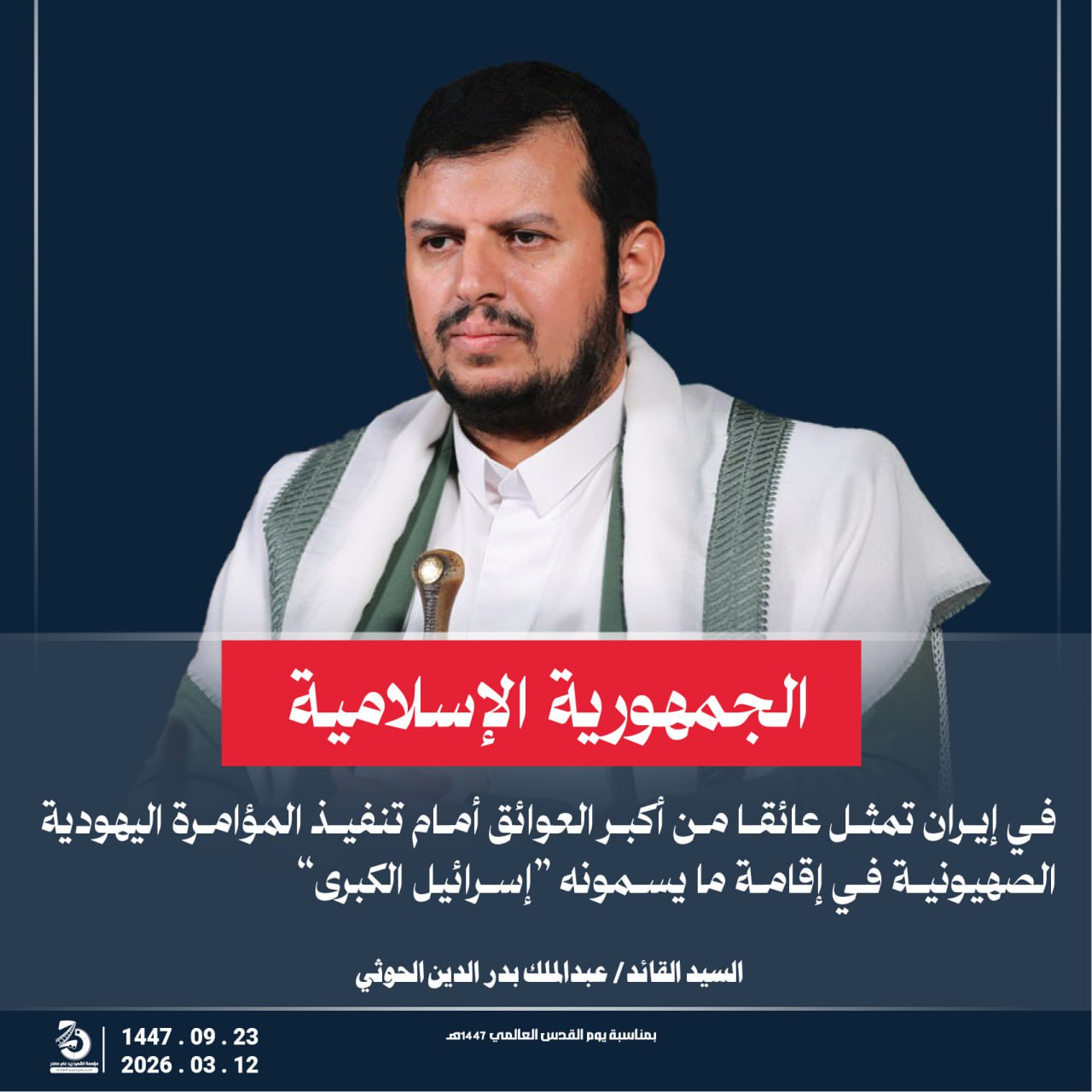 Return to "مقتطفات من كلمة السيد القائد عبدالملك بدر الدين الحوثي يحفظه الله بمناسبة يوم القدس العالمي 23 رمضان…" ايران تمثل عائقا من اكبر العوائق امام تنفيذ المؤامرة التالي السابق