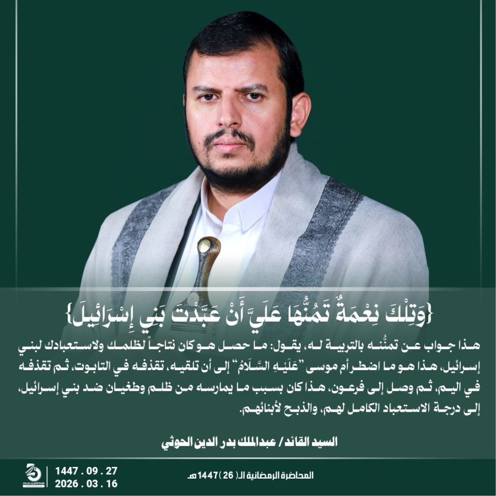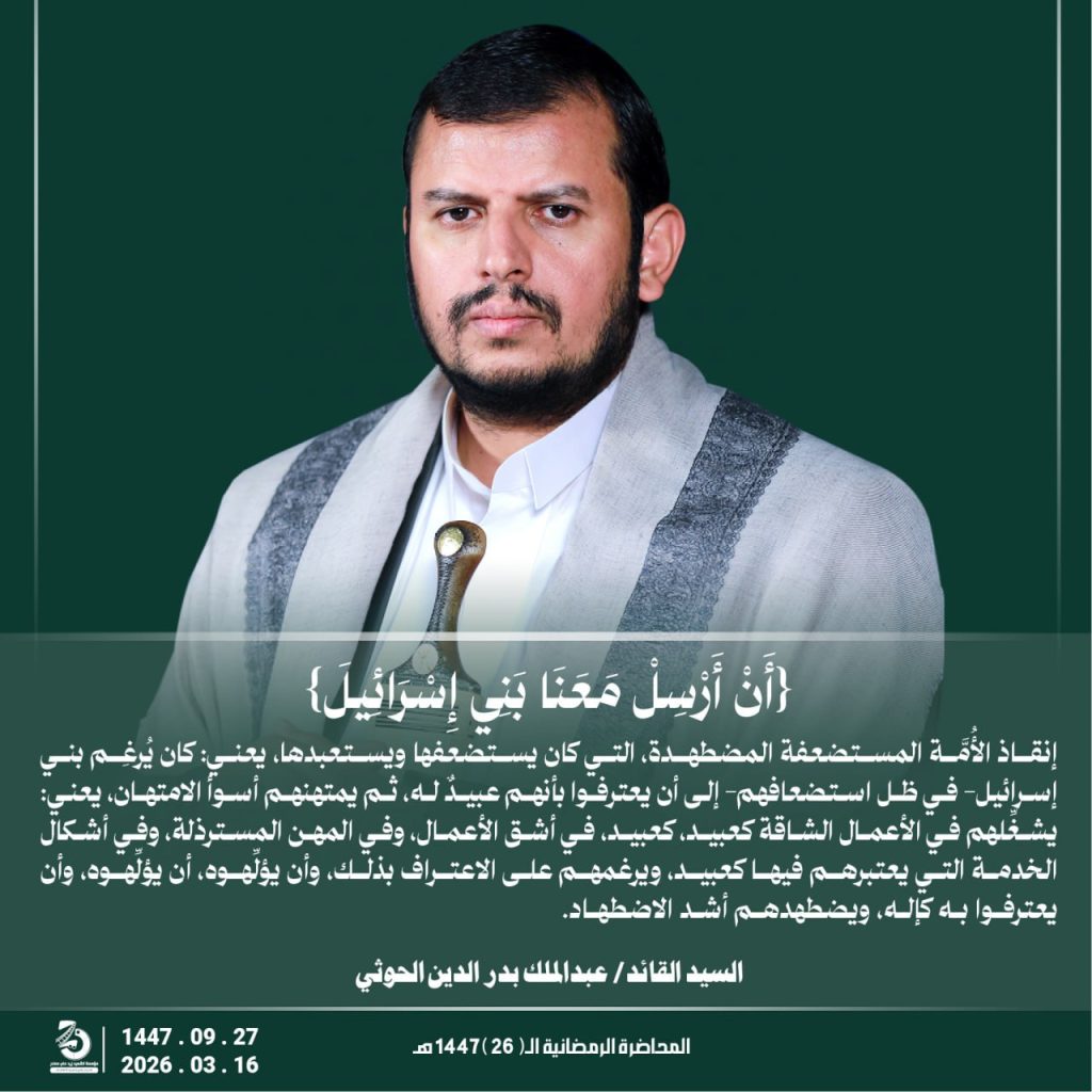 مقتطفات من المحاضرة الرمضانية الـ26 للسيد القائد عبدالملك بدر الدين الحوثي يحفظه الله 27 رمضان 1447هـ الموافق 16 مارس 2026م