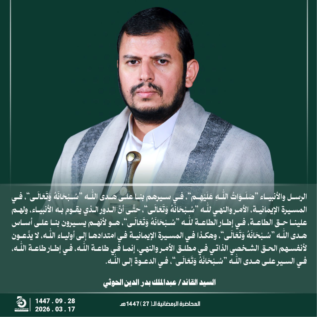 Return to "مقتطفات من المحاضرة الرمضانية الـ27 للسيد القائد عبدالملك بدر الدين الحوثي . 28 رمضان 1447هـ | 17…"
