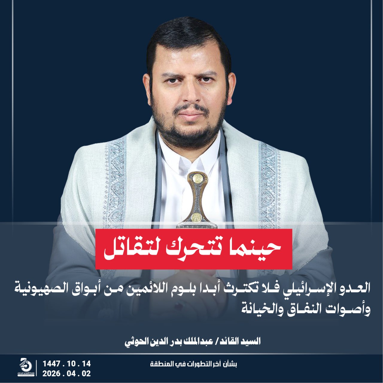 Return to "مقتطفات من كلمة السيد القائد عبدالملك بدر الدين الحوثي “يحفظه الله” بشأن آخر التطورات في…" 18 التالي السابق
