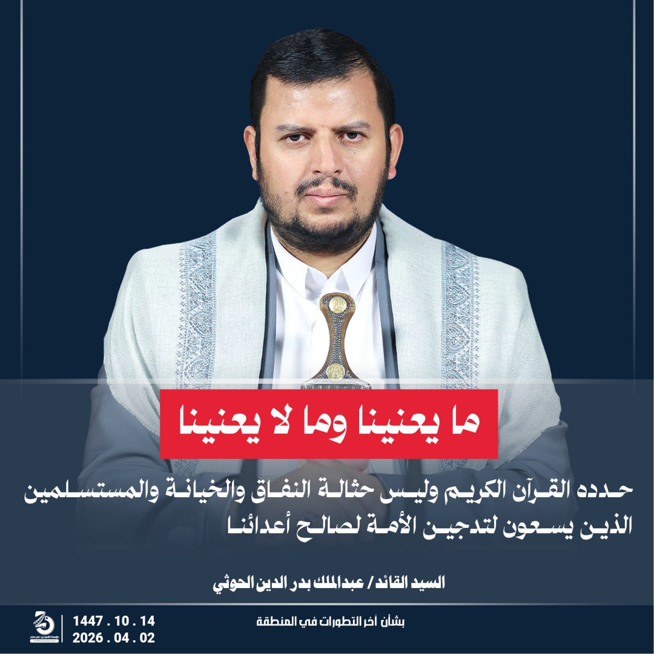 Return to "مقتطفات من كلمة السيد القائد عبدالملك بدر الدين الحوثي “يحفظه الله” بشأن آخر التطورات في…"