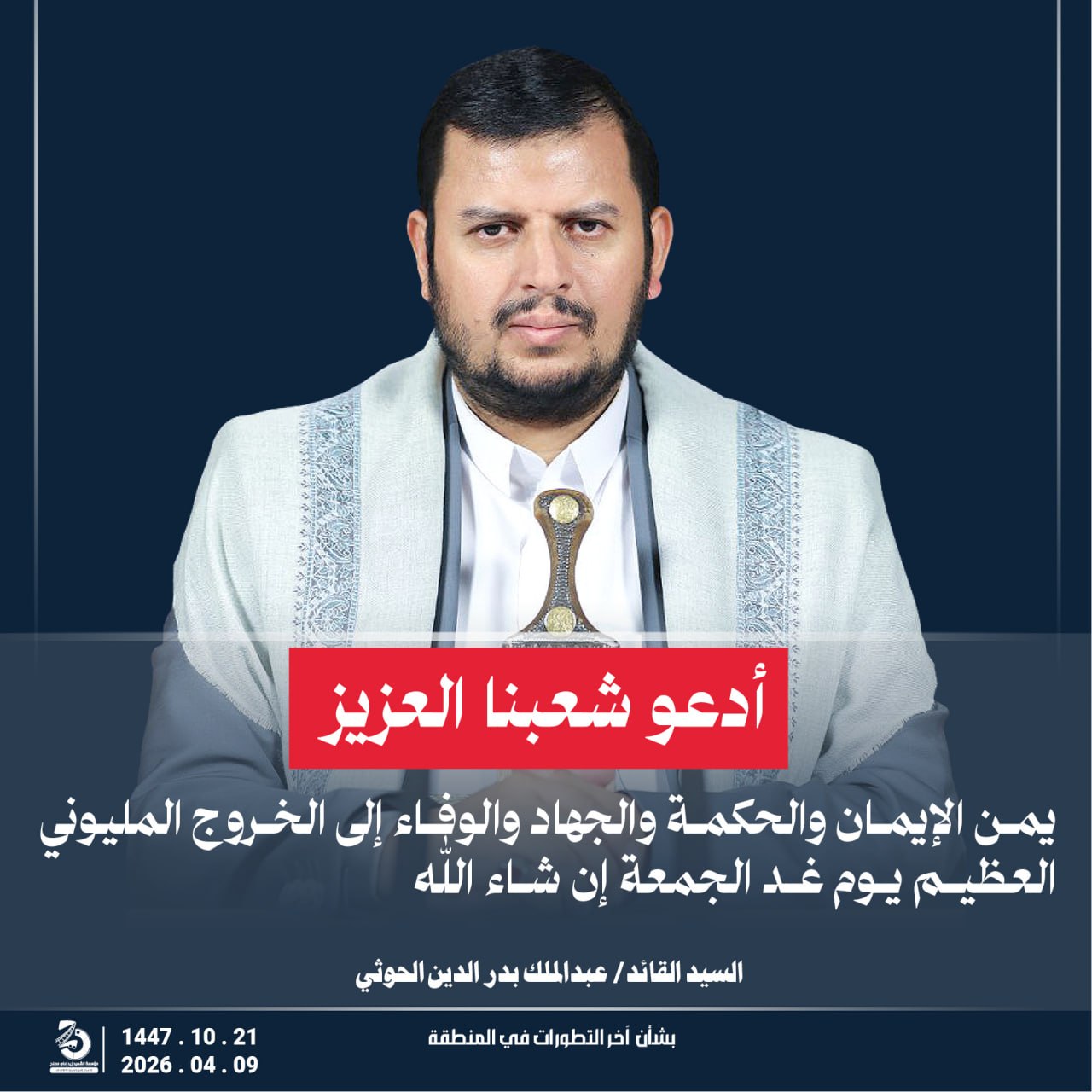 Return to "مقتطفات من كلمة السيد القائد عبدالملك بدر الدين الحوثي “يحفظه الله” حول أخر التطورات…" 20 التالي السابق