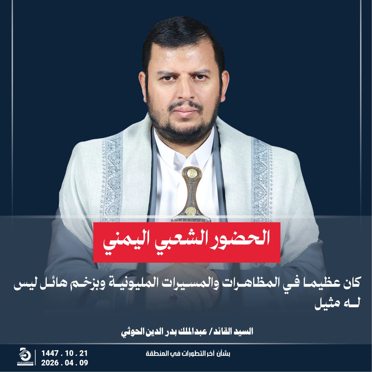 Return to "مقتطفات من كلمة السيد القائد عبدالملك بدر الدين الحوثي “يحفظه الله” حول أخر التطورات…" 8 التالي السابق