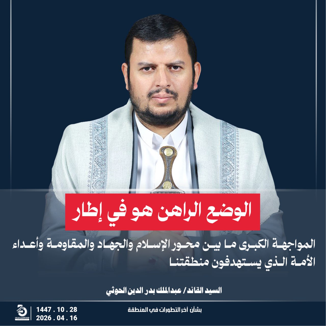Return to "مقتطفات من كلمة السيد القائد عبدالملك بدرالدين الحوثي حول آخر التطورات والمستجدات 28 شوال 1447هـ 16…"