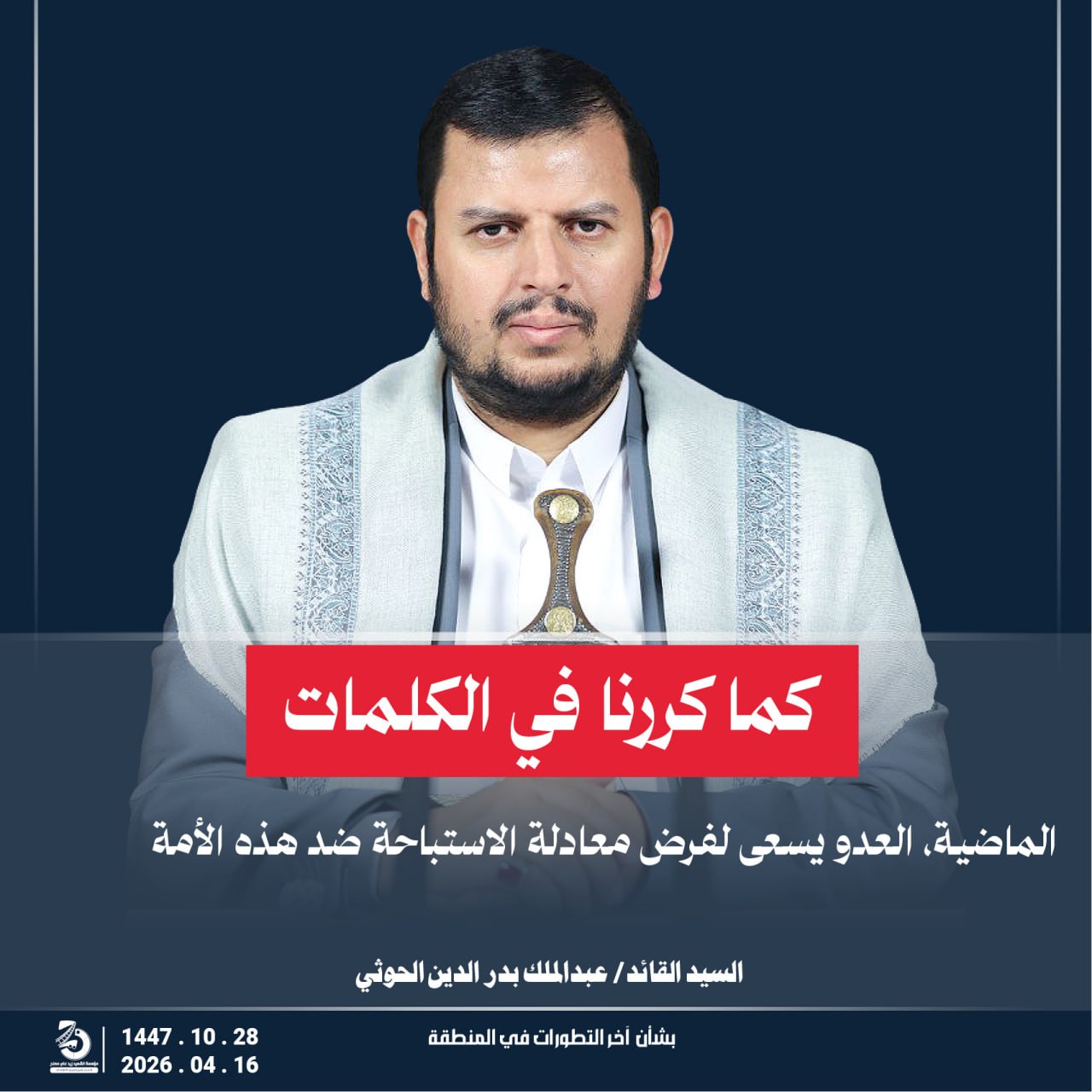 Return to "مقتطفات من كلمة السيد القائد عبدالملك بدرالدين الحوثي حول آخر التطورات والمستجدات 28 شوال 1447هـ 16…"