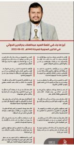 ابرز ما جاء في كلمة السيد عبدالملك بدر الدين الحوثي في كلمته بالذكرى السنوية للصرخة يونيو 11, 2022 FacebookTwitterTelegramWhatsApp