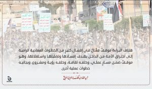 هتاف البراءة موقفٌ فعَّالٌ في إفشال كثيرٍ من الخطوات المعادية الرامية إلى اختراق الأمة من الداخل بهدف إفسادها وتضليلها واستغلالها، وهو موقفٌ ضمن مسارٍ عملي، وخلفه ثقافة، وخلفه رؤية ومشـروع، وبجانبه خطوات عملية أخرى