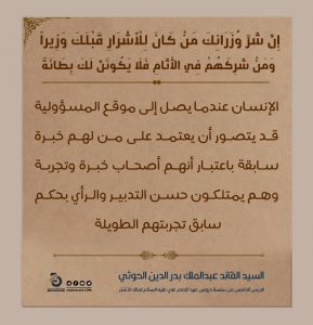 إنَّ شَرَّ وُزَرَائِكَ مَنْ كَانَ لِلْأَشْرَارِ قَبْلَكَ وَزِيراً وَمَنْ شَرِكَهُمْ فِي الآْثَامِ فَلَا يَكُونَنَّ لَكَ بِطَانَةً يوليو 5, 2022 FacebookTwitterTelegramWhatsApp
