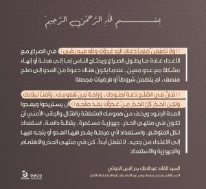 وَلاَ تَدْفَعَنَّ صُلْحاً دَعَاكَ إِلَيْهِ عَدُوُّكَ وَلِلّهِ فِيهِ رِضًى يوليو 17, 2022 وَلاَ تَدْفَعَنَّ صُلْحاً دَعَاكَ إِلَيْهِ عَدُوُّكَ وَلِلّهِ فِيهِ رِضًى FacebookTwitterTelegramWhatsApp