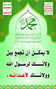 لا يمكن ان تجمع بين ولائك لرسول الله وولائك لأعدائه (ذكرى المولد النبوي الشريف 1444هجرية) سبتمبر 17, 2022 FacebookTwitterTelegramWhatsApp