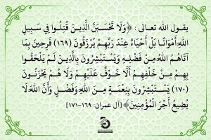 يقول الله تعالى (ولا تحسبن الذين قتلوا في سبيل الله أمواتا بل أحياء عند ربهم يرزقون) نوفمبر 21, 2022 FacebookTwitterTelegramWhatsApp
