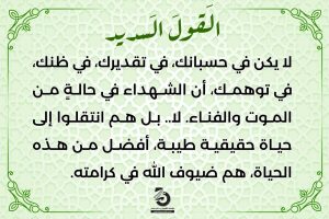 لا يكن في حسبانك في تقديرك في ظنك في توهمك أن الشهداء في حالة من الموت والفناء نوفمبر 21, 2022 FacebookTwitterTelegramWhatsApp