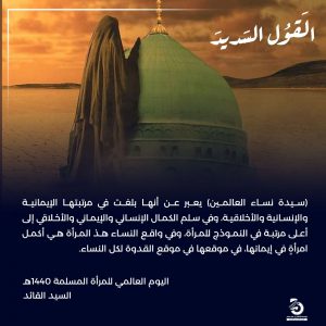 (سيدة نساء العالمين) يعبر عن أنها بلغت في مراتبها الإيمانية والإنسانية والأخلاقية أعلى مرتبة في النموذج للمرأة