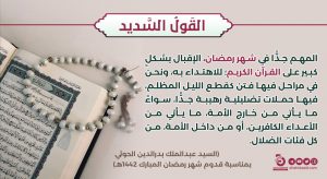 المهم جداً في شهر رمضان الإقبال بشكلٍٍٍ كبير على القرآن الكريم للاهتداء به. مارس 18, 2023 FacebookTwitterTelegramWhatsApp